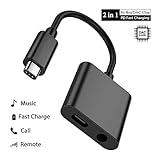 USB C to 3.5mm Audio Adapter, PHADEN 2 in 1 USB Type C Male to 3.5mm Female Stereo Earphone Converter Dongle and Chargin...
