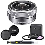 Sony SELP1650 16-50mm Power Zoom Lens (Silver) + 8PC Kit Includes 3 Piece Filter Kit (UV-CPL-FLD) + Front & Rear Lens Ca...