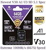 64GB Micro SD Card Plus Adapter Pack, Amplim 64 GB MicroSD SDXC Class 10 Pro U3 A1 V30 Extreme Speed 100MB/s UHS-I UHS-1...