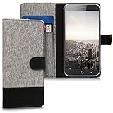 kwmobile Wallet Case for ZTE Blade A602 - Fabric and PU Leather Flip Cover with Card Slots and Stand - Grey/Black...