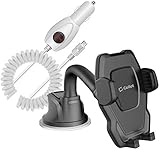 Windshield Phone Holder Goose Neck Black with Car Charger White Bundle Compatible with ZTE Grand X V970...