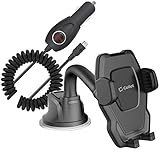 Windshield Phone Holder Goose Neck Black with Car Charger Black Bundle Compatible with ZTE Grand X V970...